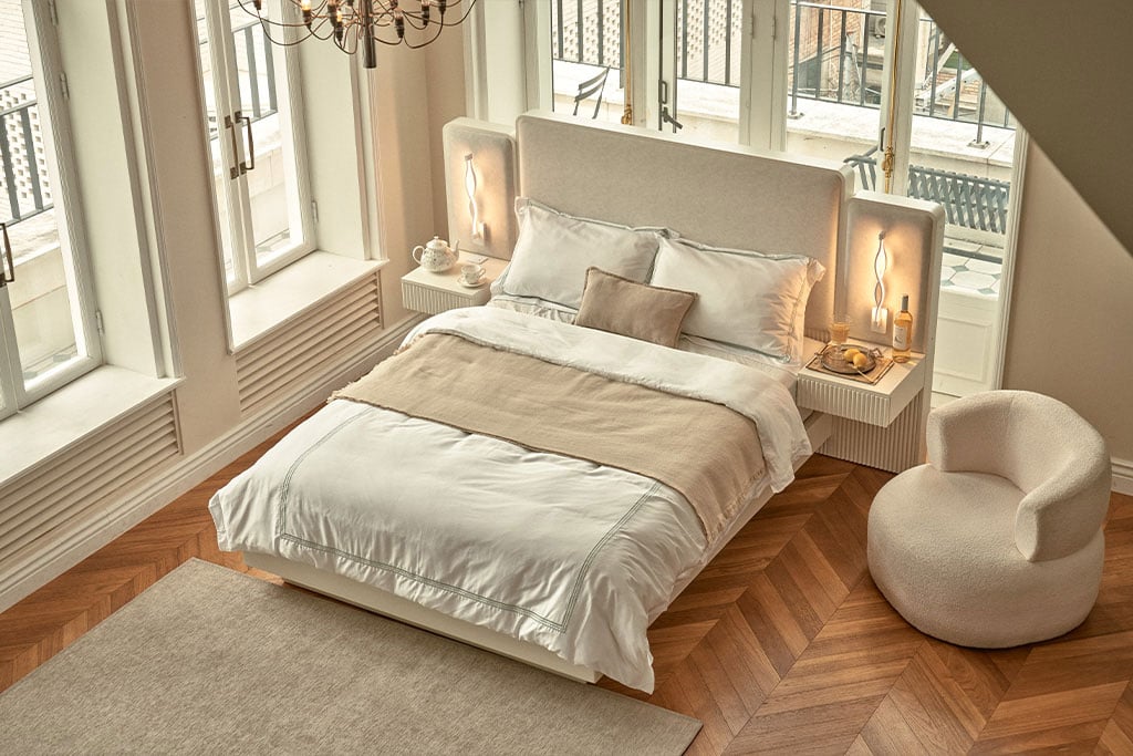 2.3. Giường ngủ Sage với tone màu trắng sang trọng