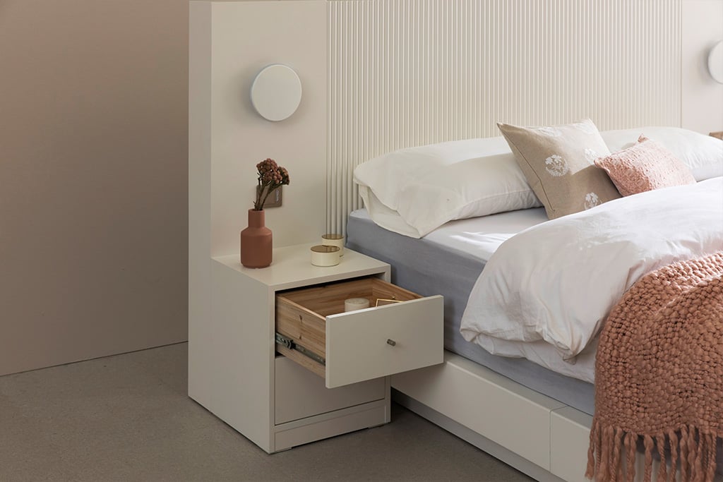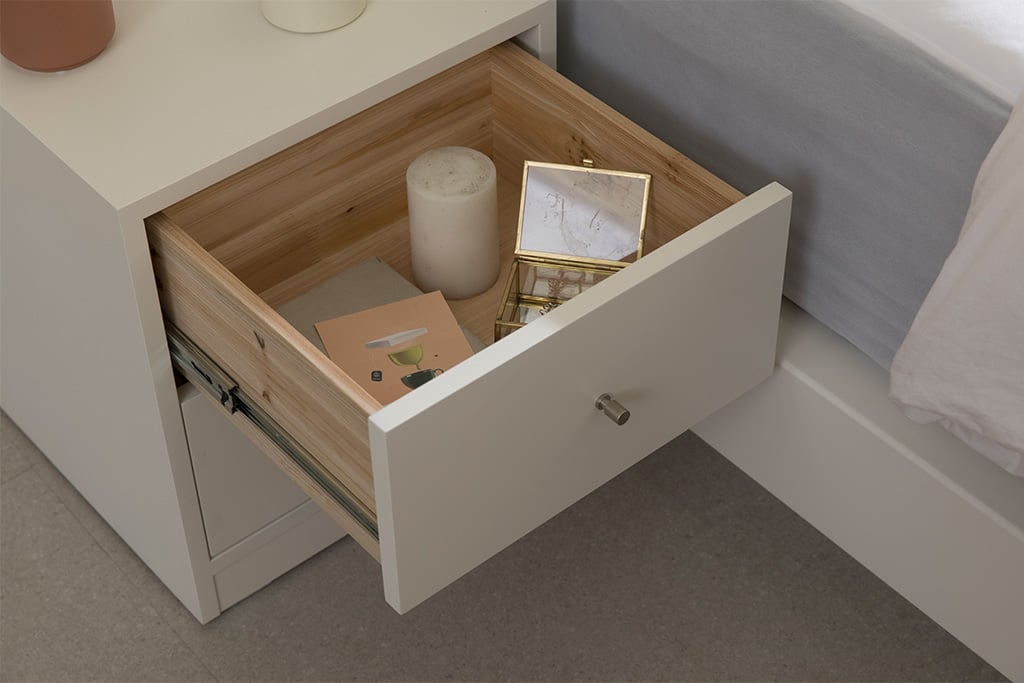 Giường Sage với tone trắng không chỉ gây ấn tượng bởi vẻ ngoài thanh lịch mà còn được chú trọng trong từng chi tiết cấu tạo. Sự kết hợp hài hòa giữa chất liệu, thiết kế và các tiện ích thông minh đã tạo nên một sản phẩm vừa bền bỉ vừa tinh tế, đáp ứng nhu cầu của những gia đình hiện đại.
