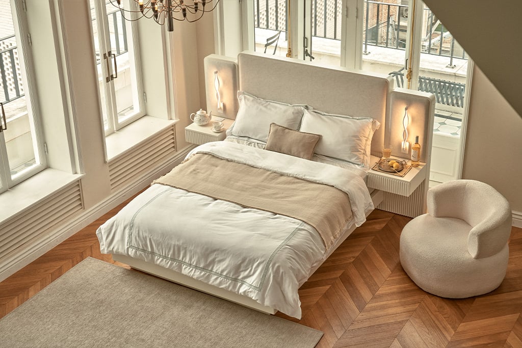 + Khi bạn đã xác định đúng vị trí, hướng và không gian lý tưởng – thì chiếc giường đóng vai trò then chốt để hoàn thiện. Nội thất Hangal gợi ý những tiêu chí: