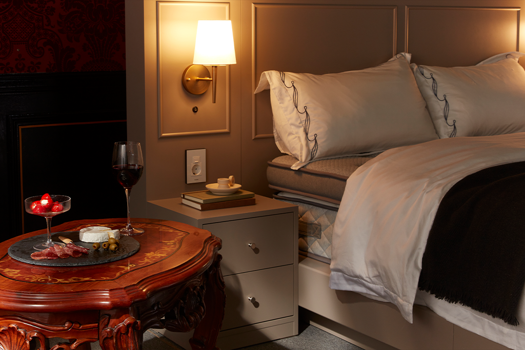 - Đèn ngủ phong cách cổ điển được bố trí tinh tế, tạo điểm nhấn ấm áp và tiện nghi cho không gian phòng ngủ.