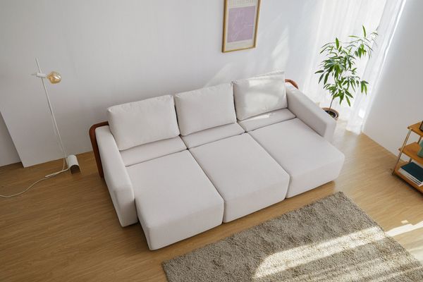 Điểm cộng lớn nhất của KAMA chính là hệ thống ray trượt kết hợp động cơ điện thế hệ mới. Thay vì phải tốn sức kéo gấp thủ công, KAMA là chiếc sofa điện thực thụ cho phép bạn thao tác chỉ với một nút chạm. Ghế sẽ tự động trượt mở thành giường một cách êm ái, mượt mà và hoàn toàn không gây tiếng động – một điểm cộng tinh tế cho không gian cần sự yên tĩnh.