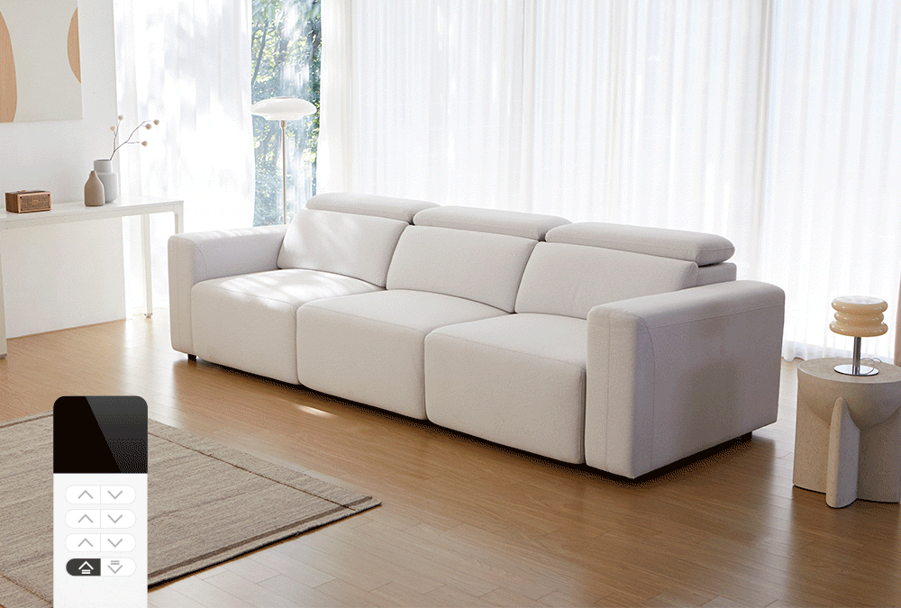 베트남의 현대적인 아파트 구조에서도 거실 공간은 소중합니다. 일반적인 리클라이너는 등받이가 뒤로 넘어가며 벽 공간을 많이 차지하지만, 베스타 소파는 앞으로 미끄러지듯 펼쳐지는 '모션 슬라이드' 방식을 채택했습니다. 벽에 바짝 붙여 설치해도 공간 낭비가 전혀 없어 거실을 훨씬 게 사용할 수 있습니다.